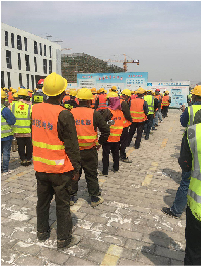 在咸陽中電西部智谷項(xiàng)目施工現(xiàn)場,誠銳電器施工人員冒著炎炎烈日,奮戰(zhàn)施工一線;誠銳電器及時(shí)調(diào)整工人作息時(shí)間,每周召開安全會(huì)議,確保高溫天氣下工人施工安全,有序推進(jìn)項(xiàng)目施工進(jìn)度。