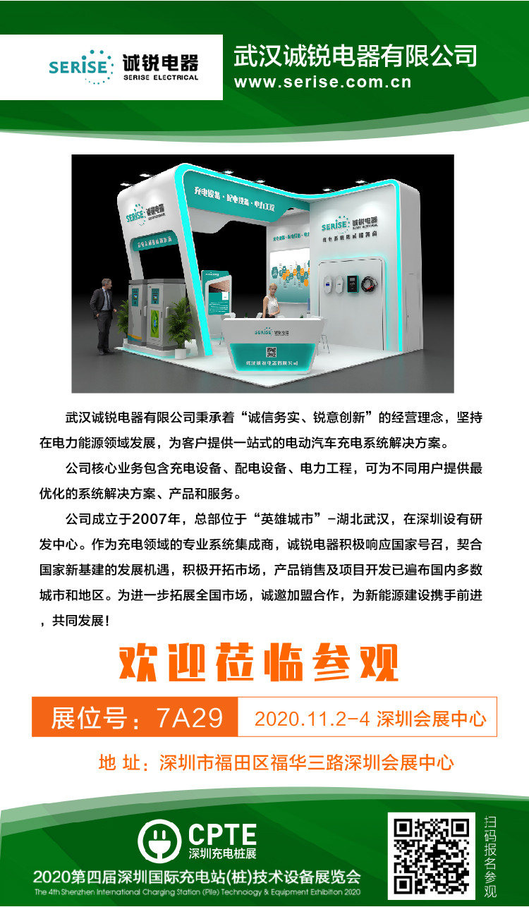 為積極響應黨和國家的號召,獻禮深圳特區40周年慶, 由:充換電百人會、中國充電樁網、賀勵博覽集團聯合主辦!上海賀勵展覽有限公司、賀勵展覽(深圳)有限公司承辦,2020第四屆深圳國際充電(站)樁技術設備展覽會,將于11月2號開展。武漢誠銳電器有限公司作為參展商之一,也將亮相于本次展會!